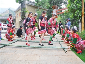 “花腰田间”占地28亩,植入了丰富的花腰傣文化体验项目,除了土掌房、梯田等景观外,还把花腰傣传统民俗中照电筒、赶花街、恋爱、农耕等文化进行真实的场景呈现,通过篝火晚会、民族广场舞等活动,提升游客的参与度和文化体验度,展现花腰傣文化的本真和魅力,实现民族文化保护传承与开发利用有效融合。